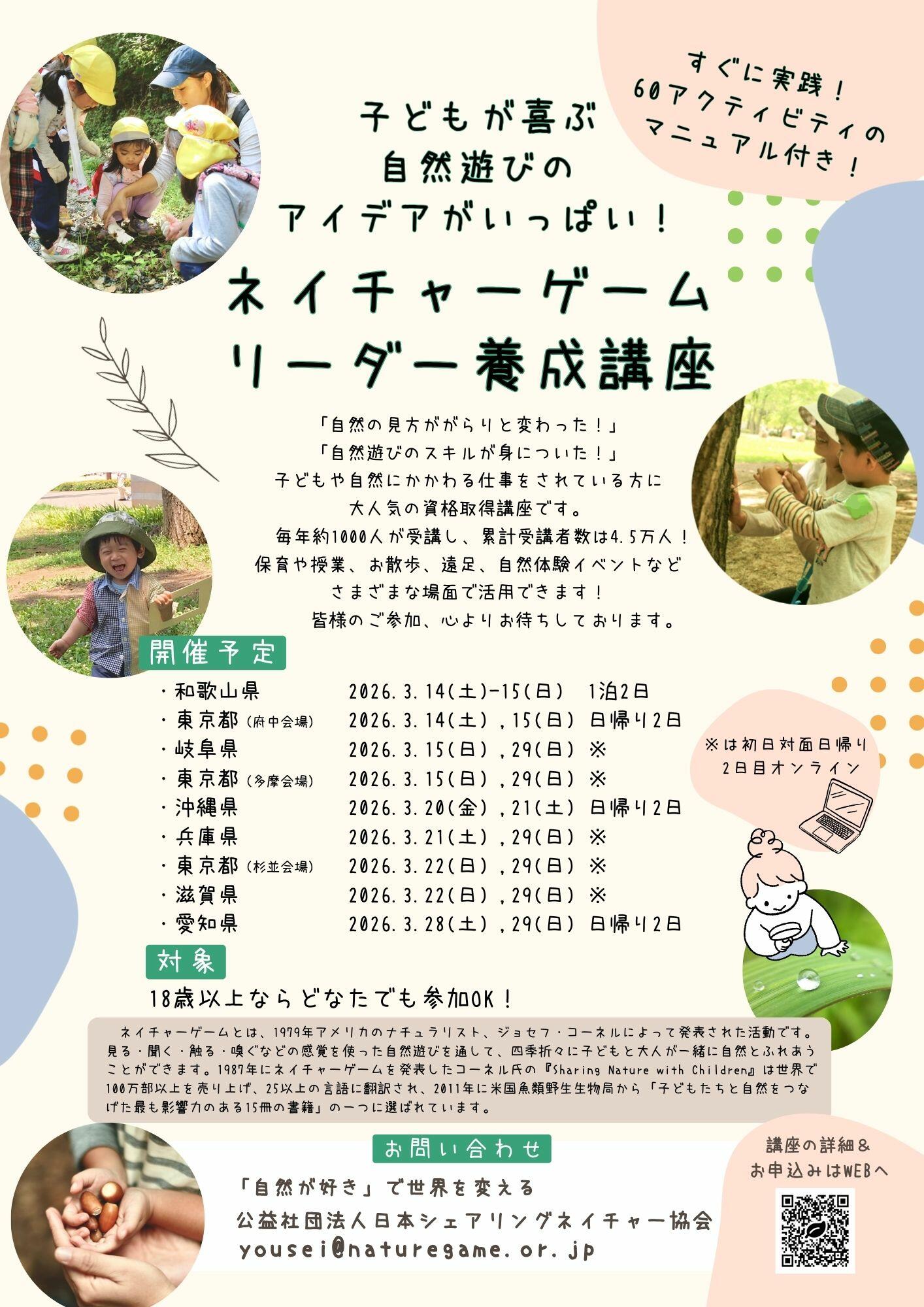 ネイチャーゲームリーダー養成講座の開催予定