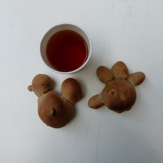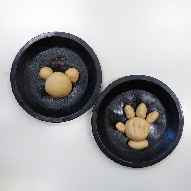 そのあと、しばらく発酵させ、ふくらむのを待ってから各自、自分が食べるパンを好きな形にするのだけれど、これがネンド工作しているようで、楽しい時間です。