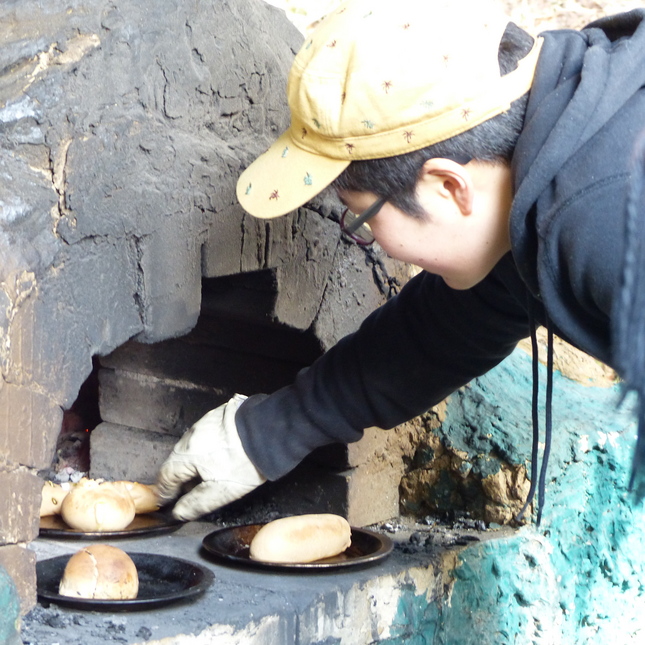 さて、京都では前回レポートした「漢字の成り立ちセミナー」の2週間後に、石窯パン焼きを体験してきました。またまた登場なるは、実に多彩な活動をされています京都精華大学の板倉先生!
