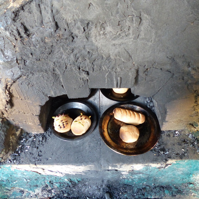 でもねぇ、これが焼き上がりにはこうじゃなくなっているのよねぇ。どんな形になってできあがったかの答えは、しばらく焼いている風景の写真のあとで。