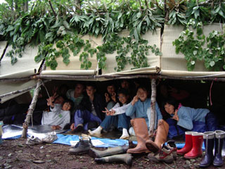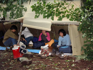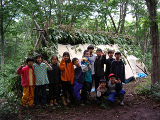 みんなで作った森の家での一夜が明けました。 |