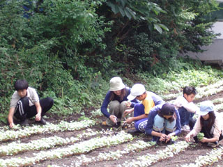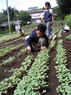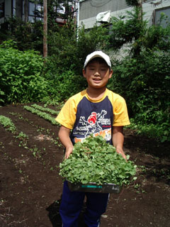 午後からは、5日に種まきをしたソバが芽を出したので、畑に行って収穫。 |