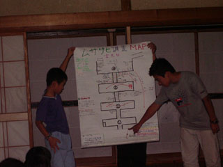 そして、5日間にわたっての調査と、2日間でまとめた、ムササビ調査の発表会です。 |
