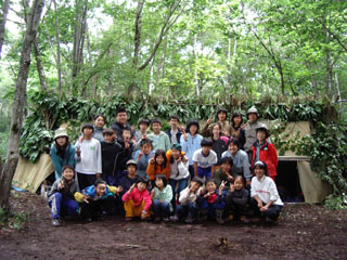 家の壁つくり、森を感じてみよう(ネイチャーゲーム)